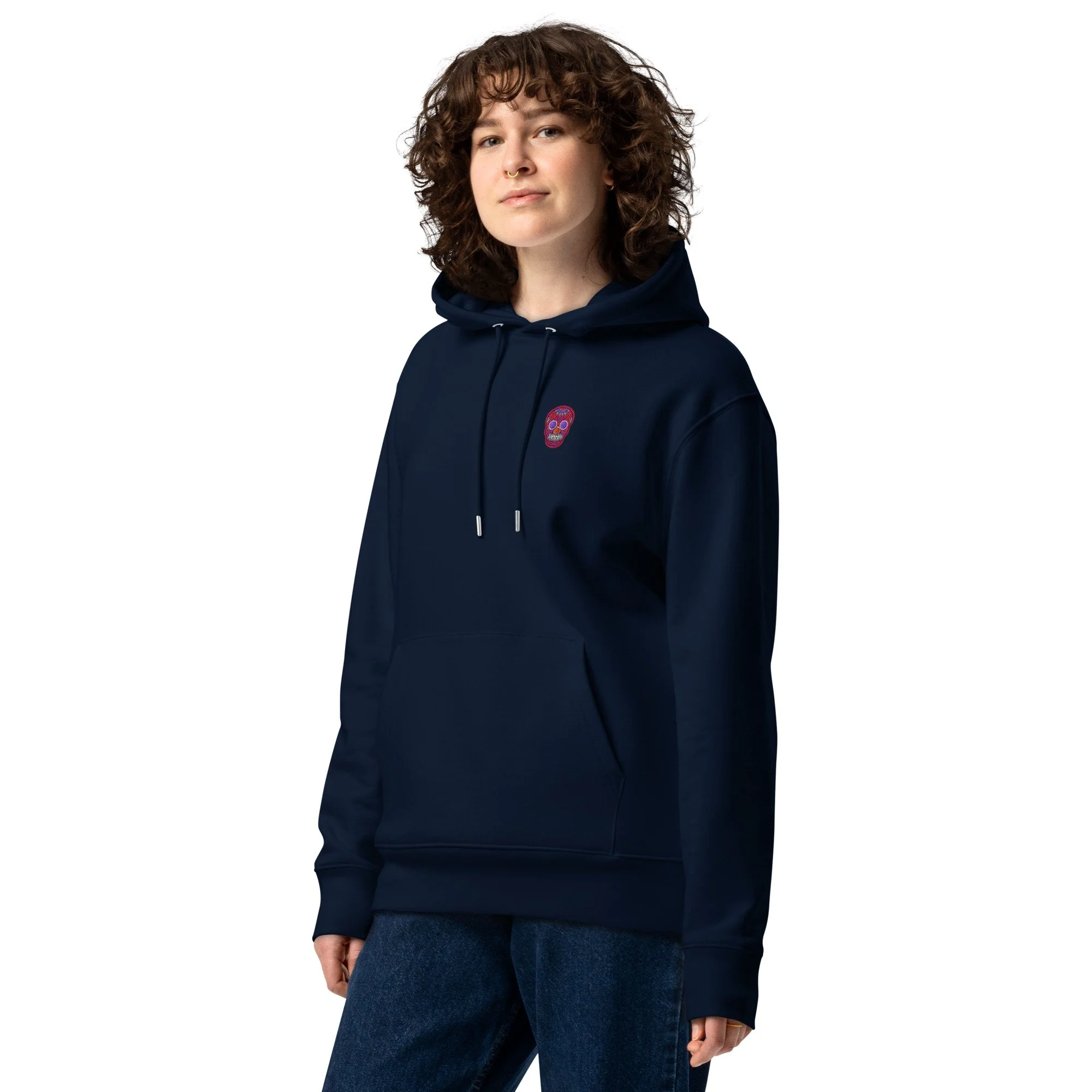 Thanks to its organic materials, the unisex essential eco hoodie is a great buy for eco-conscious fashion lovers. This comfortable regular fit hoodie has a double-layered hood, set-in sleeves, and a front pouch pocket.